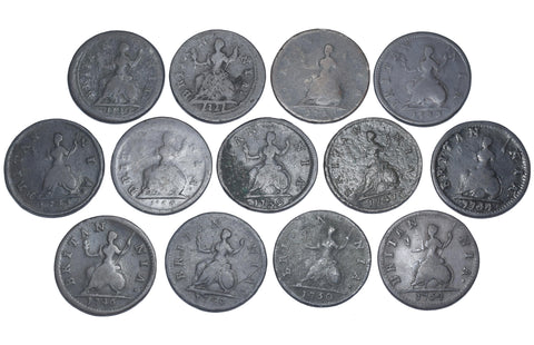 1720 - 1754 Farthings Lot (13 Coins) - British Copper Coins - All Different