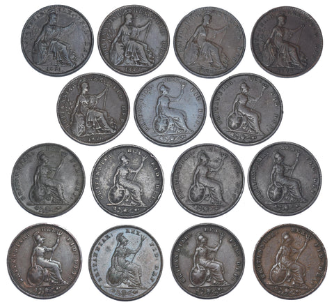 1821 - 1837 Farthings Lot (15 Coins) - British Copper Coins - All Different