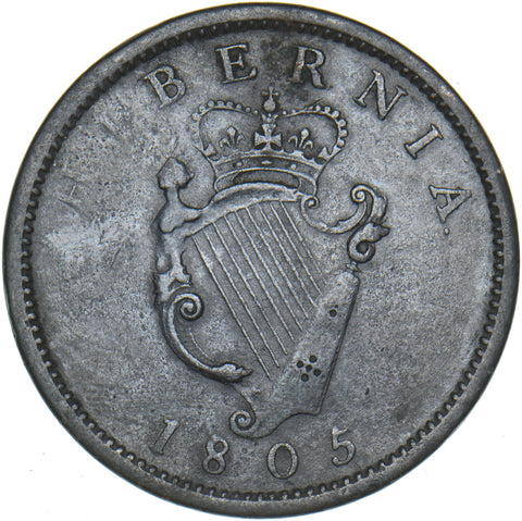 1805 Ireland Halfpenny - George III Copper Coin - Nice