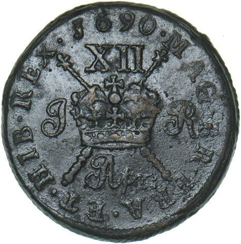 1690 Ireland Gunmoney Shilling (Apr:) - James II Copper/Brass Coin - Nice