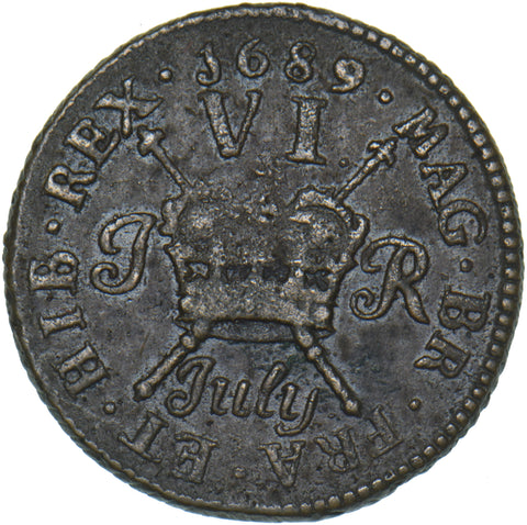 1689 Ireland Gunmoney Sixpence (July.) - James II Copper/Brass Coin - Nice