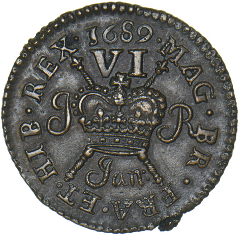 1689 Ireland Gunmoney Sixpence (Jan:) - James II Copper/Brass Coin - Very Nice