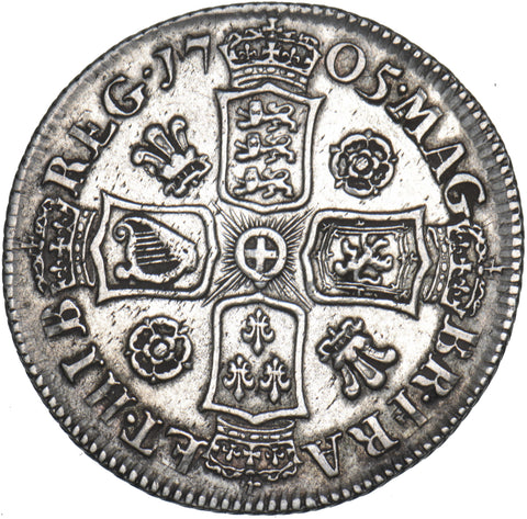 1705 Shilling (Roses & Plumes) - Anne British Silver Coin - Nice