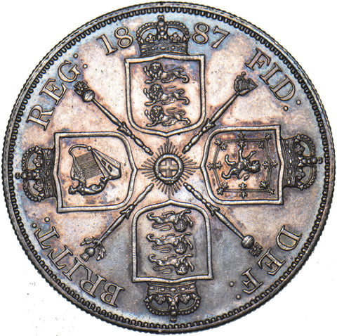 1887 Double Florin (Arabic 1) - Victoria British Silver Coin - Very Nice