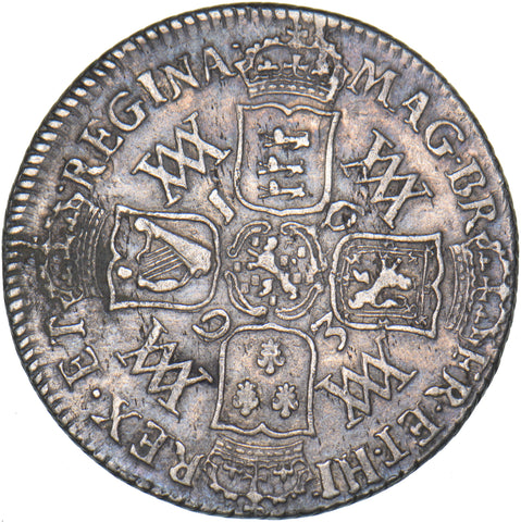 1693 Shilling (3 Over 0) - William & Mary British Silver Coin - Nice