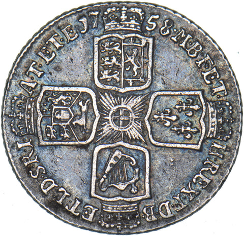 1758 Shilling - George II British Silver Coin - Nice