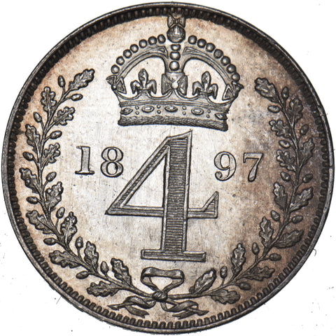 1897 Maundy Fourpence - Victoria British Silver Coin - Superb