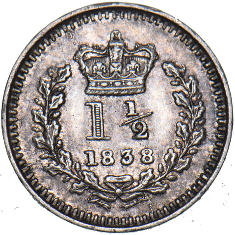 1838 Threehalfpence - Victoria British Silver Coin - Very Nice