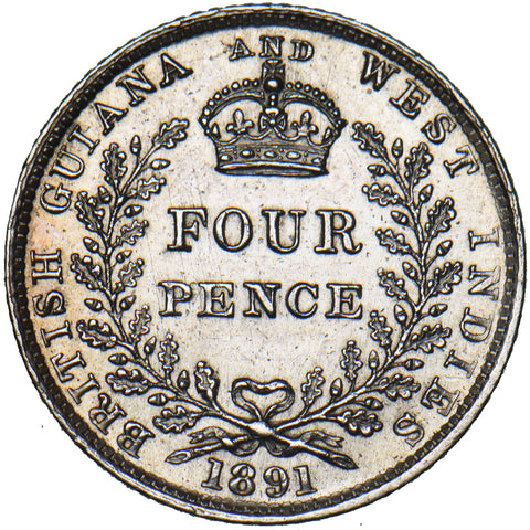 1891 British Guiana West Indies Four Pence - Victoria Silver Coin - Nice