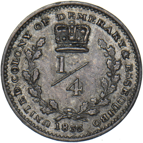 1833 Demerary & Essequibo 1/4 Guilder - William IV Silver Coin - Very Nice