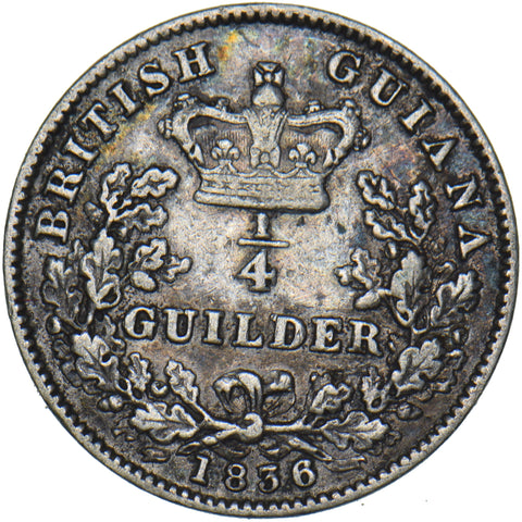 1836 British Guiana 1/4 Guilder - William IV Silver Coin - Nice