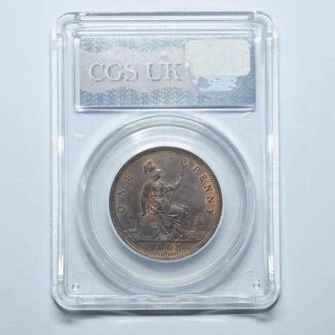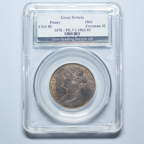 1863 Penny (CGS 80) - Victoria British Bronze Coin - Superb