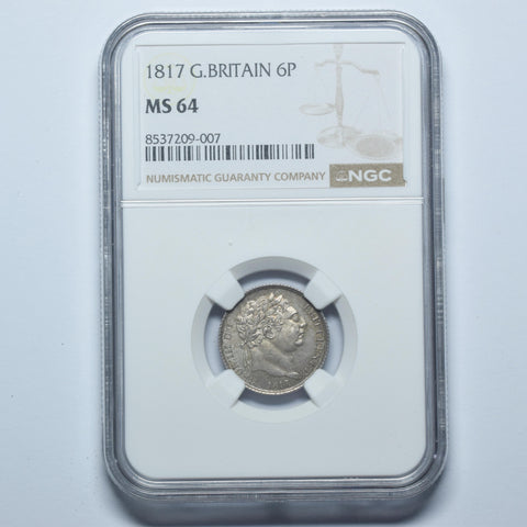 1817 Sixpence (NGC MS 64) - George III British Silver Coin - Superb