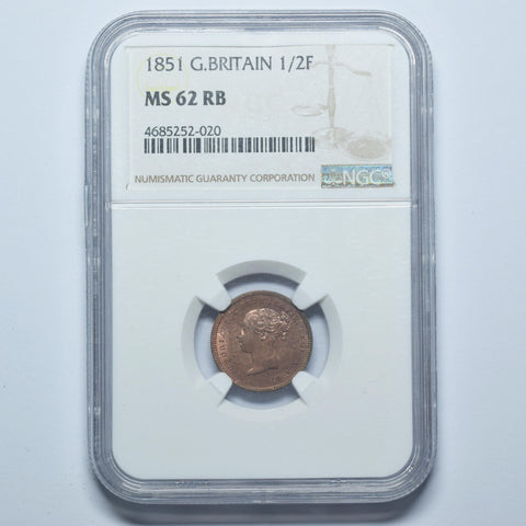 1851 Half Farthing (NGC MS 62 RB) - Victoria British Copper Coin - Superb