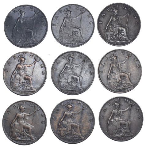 1902 - 1910 Better Grade Farthings Lot (9 Coins) - Edward VII British Bronze