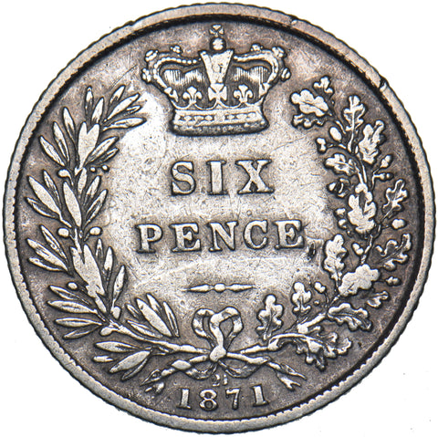 1871 Sixpence (Die no. 21) - Victoria British Silver Coin