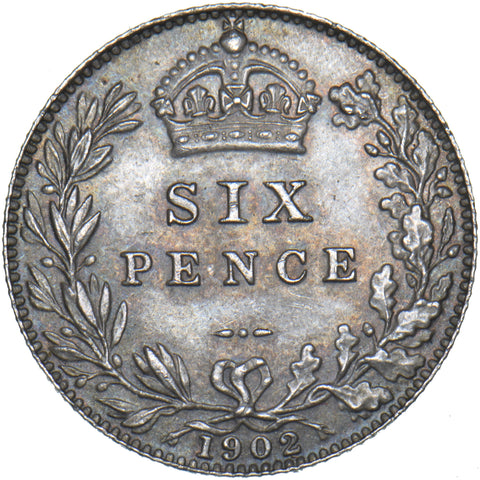 1902 Sixpence - Edward VII British Silver Coin - Superb