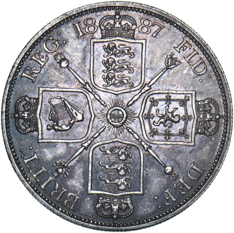 1887 Double Florin (Roman 1) - Victoria British Silver Coin - Very Nice