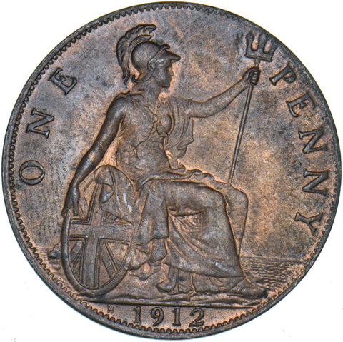 1912 H Penny - George V British Bronze Coin - Very Nice
