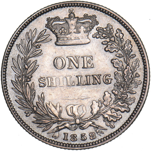 1858 Shilling (8 Over 9) - Victoria British Silver Coin - Nice