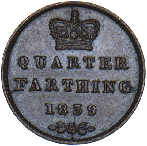 1839 Quarter Farthing - Victoria British Copper Coin - Very Nice