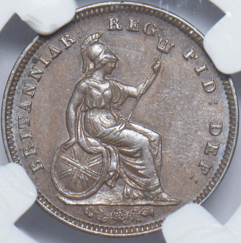 1844 Third Farthing (NGC AU 58 BN) - Victoria British Copper Coin - Very Nice