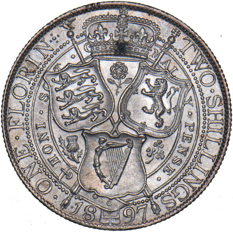 1897 Florin - Victoria British Silver Coin - Superb