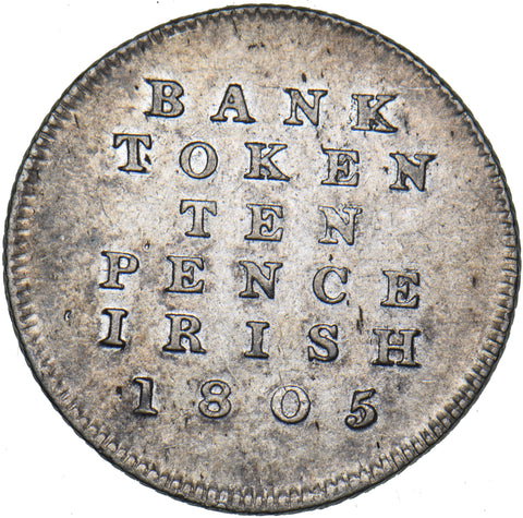1805 Ireland 10 Pence Bank Token - George III Silver Coin - Nice