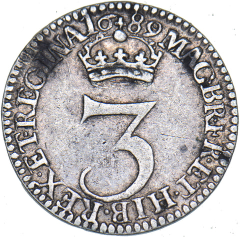 1689 Threepence - William & Mary British Silver Coin - Nice