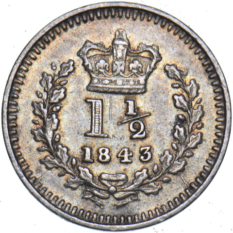 1843 Threehalfpence - Victoria British Silver Coin - Nice