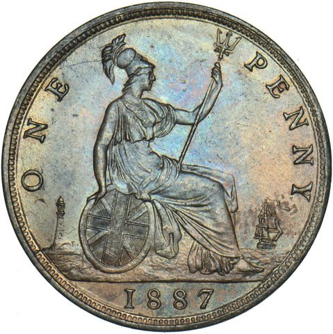 1887 Penny - Victoria British Bronze Coin - Very Nice