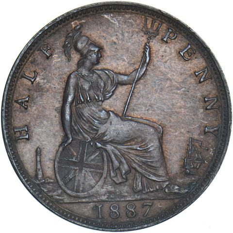 1887 Halfpenny - Victoria British Bronze Coin - Very Nice
