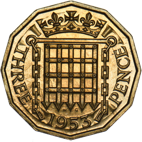 1953 Proof Brass Threepence - Elizabeth II British Coin - Superb