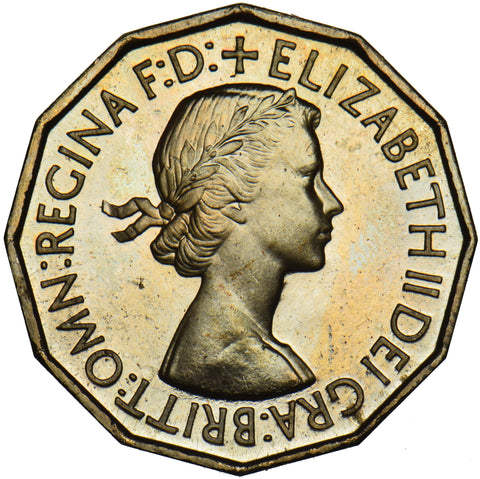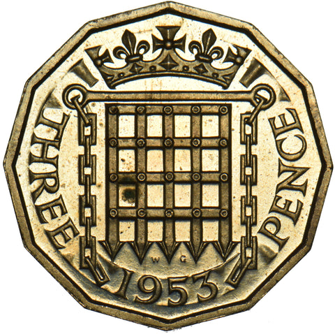1953 Proof Brass Threepence - Elizabeth II British Coin - Superb