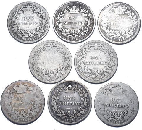 1842 - 1866 Shillings Lot (8 Coins) - Victoria British Silver Coins