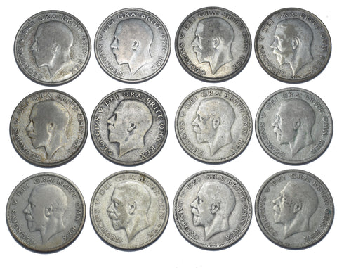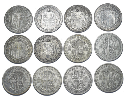 1925 & 1930 Rare Date Halfcrowns Lot (12 Coins) - George V British Silver Coins