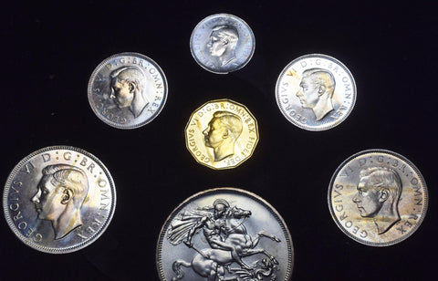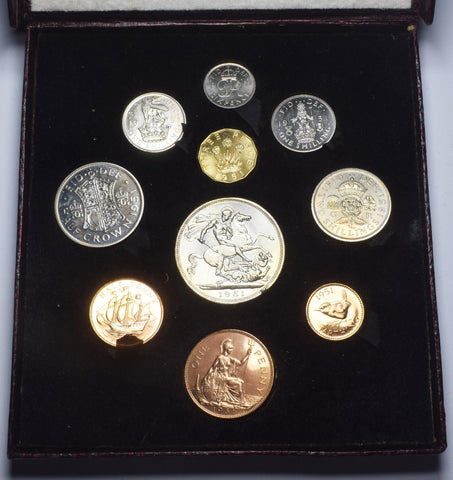 Superb coins with excellent detail and brilliant lustre. Some coins have ribbon toning. The crown is jammed in and can’t easily be removed.