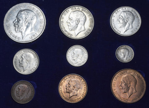An unofficial specimen set in a blue box. The box in good condition though with some remnants of writing on the upper interior.